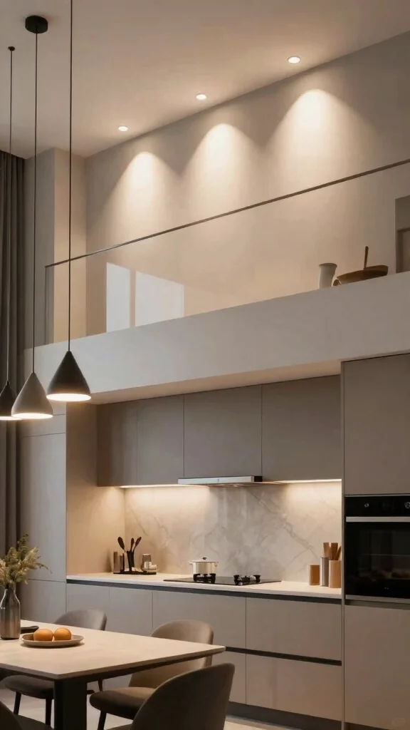 This multi-level approach not only elevates your kitchen’s design but also ensures optimal lighting for various tasks, making the space both functional and inviting.