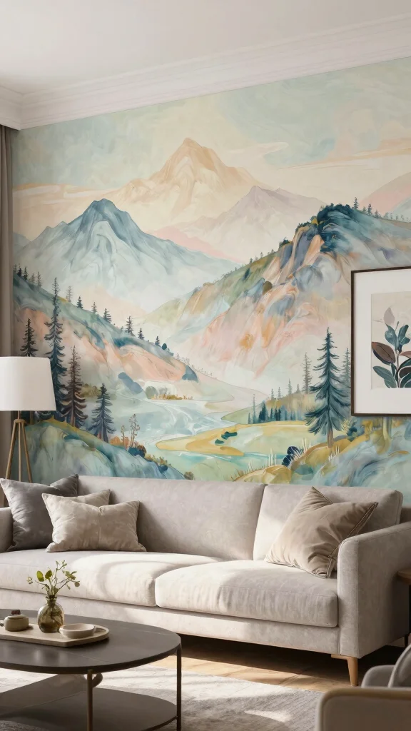 Mural art can transform your living room into a stunning visual experience. Whether you choose a serene landscape or a whimsical design, a mural can reflect your personality and style. This artistic option allows for creativity, making your accent wall a true centerpiece.