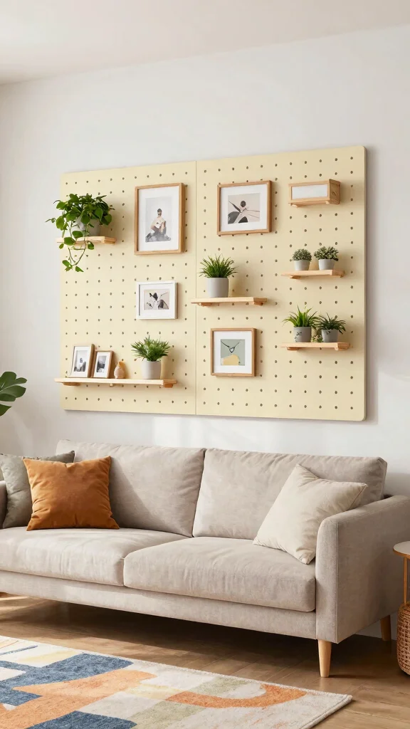 Pegboards are versatile and stylish options for organizing your living room, moving beyond the garage into your home decor. Use a pegboard to hang art, crafts, or lightweight decor items, adding a personal touch while keeping your floor space clear. This adaptable solution can evolve with your needs, allowing you to change displays as desired. Paint it to match your walls or opt for wood for a natural feel.