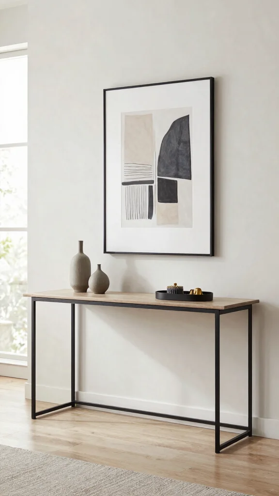 A slim console table is an excellent addition to your living room, providing storage without consuming too much space. Place it against a wall or behind the sofa to keep essentials like keys, coasters, or decor organized and accessible. Look for tables with drawers or shelves to maximize storage while adding a stylish touch to your space.