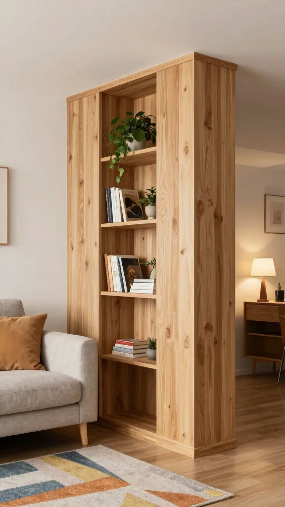 For open floor plans, vertical dividers can beautifully define your living room space while providing essential storage. These can take the form of bookshelves, storage cabinets, or decorative screens that create visual separation without enclosing the area. They offer a unique way to organize items while enhancing the overall decor of your living space.