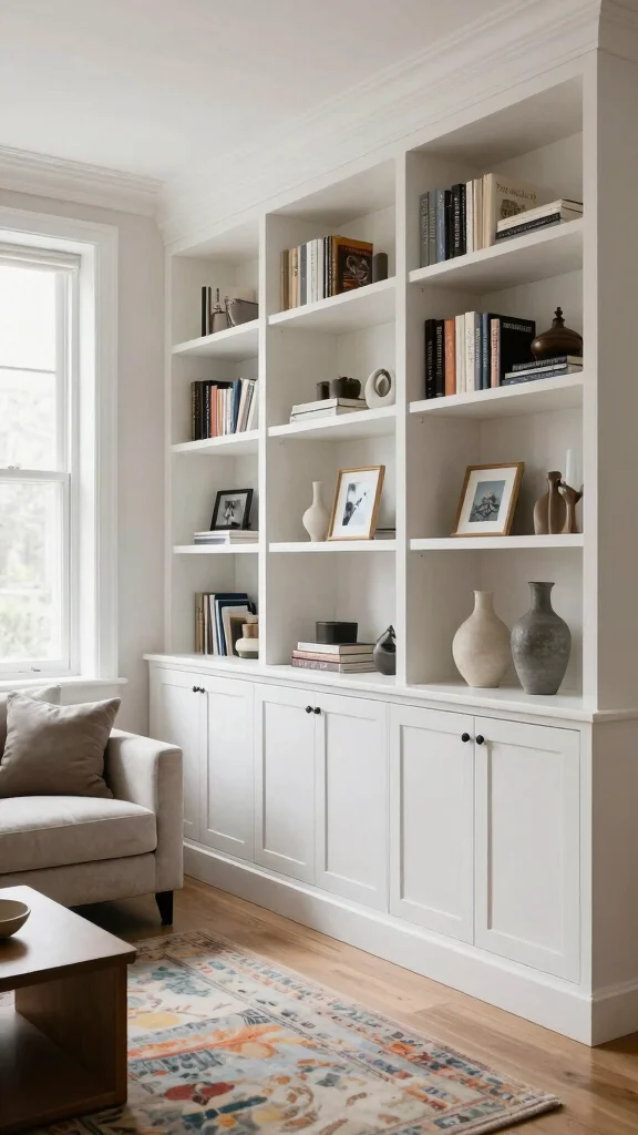 This strategy not only provides functional storage but also enriches the overall aesthetic of your living room.