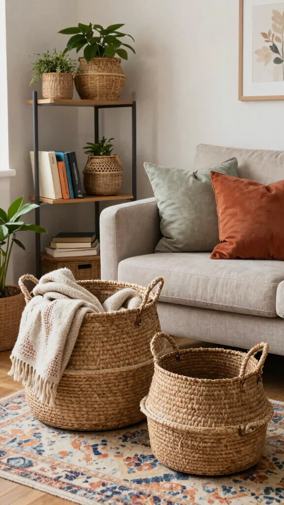 This approach not only keeps your living room tidy but also adds layers of texture and style to your space.