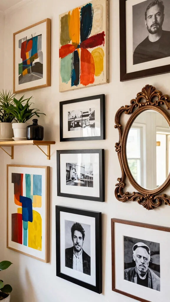Mix different art styles and frames to form a unique gallery wall that reflects your personality.