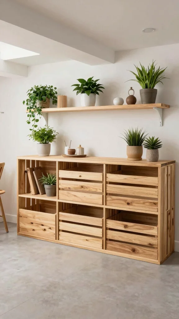 Fun fact: Open storage can visually expand a space by up to 20%, a game-changer for low ceiling basement ideas. Keep items neatly organized in crates or baskets to maintain openness and easy accessibility.