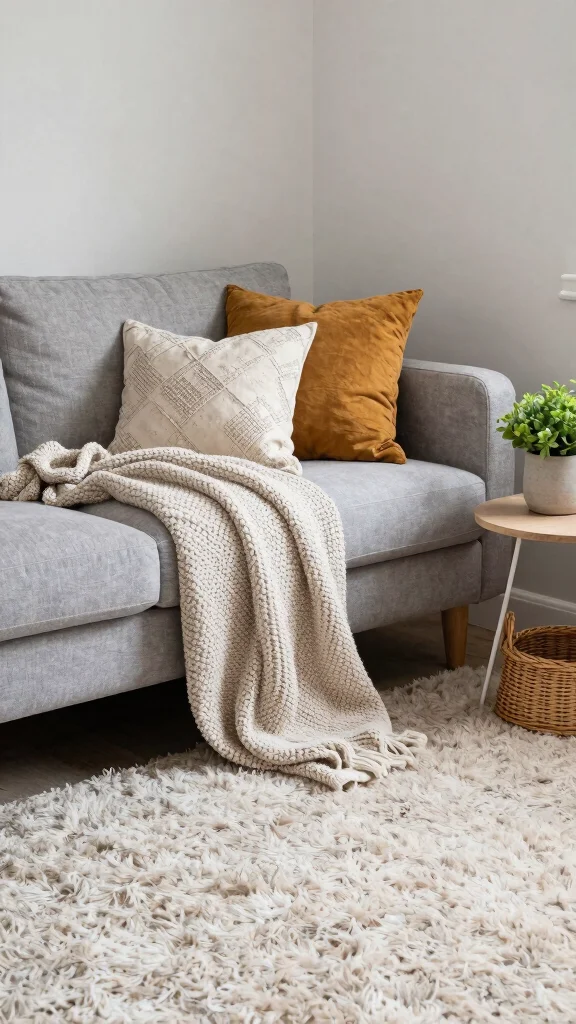 A thoughtfully layered textile arrangement not only adds softness but also fosters a relaxed atmosphere, making your basement feel more inviting.