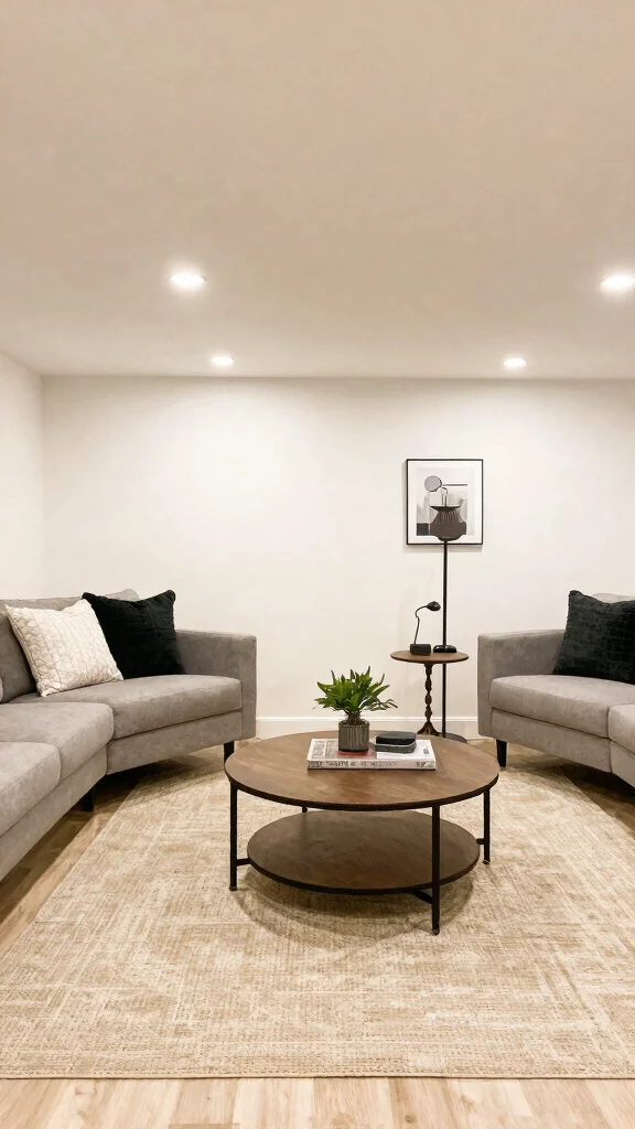 Select fixtures that blend with your overall basement design. Sleek, modern flush mounts create a clean look, while recessed lights offer a subtle glow. Avoid heavy chandeliers or pendants which can overwhelm small spaces. Choose fixtures that draw the eye upward, enhancing the illusion of height.