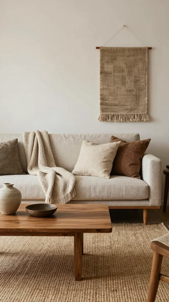 Layering textures invites warmth and livability into your minimalist living room while maintaining its stylish charm.