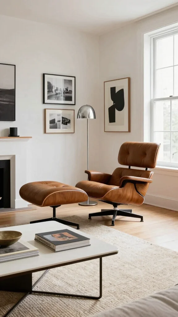 Blending vintage and modern elements brings a unique character to your mid-century minimalist living room. This style celebrates the charm of the past while embracing the sleek lines of contemporary design. Picture an iconic Eames lounge chair next to a modern light fixture—this contrast creates visual excitement and personalization in your space.