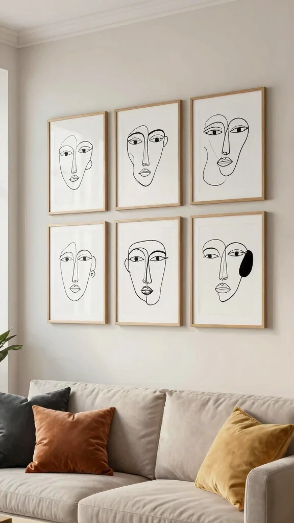 Line art brings a touch of emotion and storytelling to your decor while maintaining simplicity, making it a perfect fit for modern living room aesthetics.