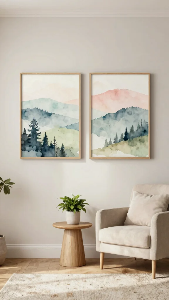 For a harmonious design, look for artworks featuring muted greens and blues that evoke tranquility. Frame these prints in natural wood to enhance the organic feel and consider grouping smaller prints for a gallery effect that adds visual interest.