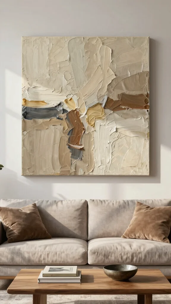 Textured canvas art embodies the essence of understated home decor, providing a unique sensory experience that enriches your living area.