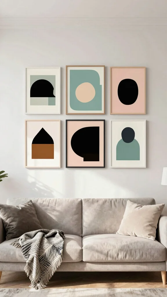 Integrating abstract shapes into your decor allows you to express modern aesthetics effortlessly. The clean lines and thoughtful compositions enhance your living room’s contemporary vibe.
