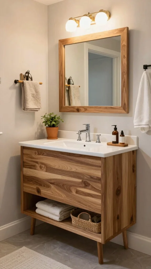 Texture is vital in creating depth and interest within your bathroom space. Opting for a natural wood bathroom vanity with varied textures can breathe life into the room. Consider vanities that blend smooth wood with rougher elements, such as reclaimed pieces or mixed materials.