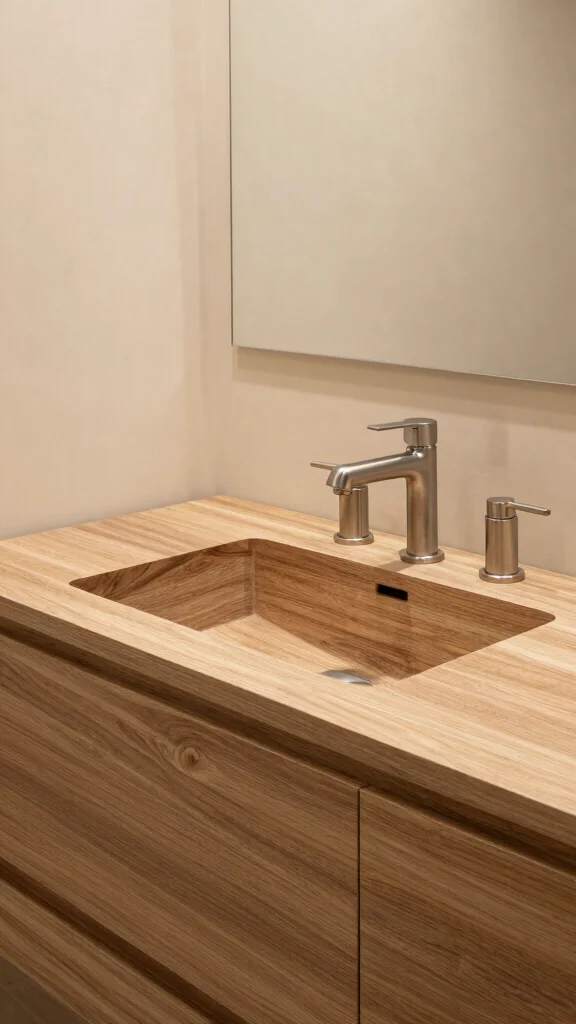 For a luxurious yet earthy vibe, opt for finishes like matte hardwax oil or water-based polyurethane in satin or matte sheens to show grain while staying durable in humidity. Choose hardware in warm metallics—brushed brass, antique bronze, or copper blends that complement warm tones. Pair with cabinet fronts in natural hues (honey, maple, walnut) and keep lines simple to let the wood shine. Add organic design elements through soft lighting and natural textures to reinforce the rustic bathroom decor without overpowering the space.