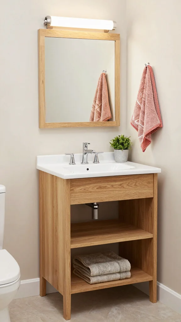 16. Compact Oak Vanity for Small Spaces