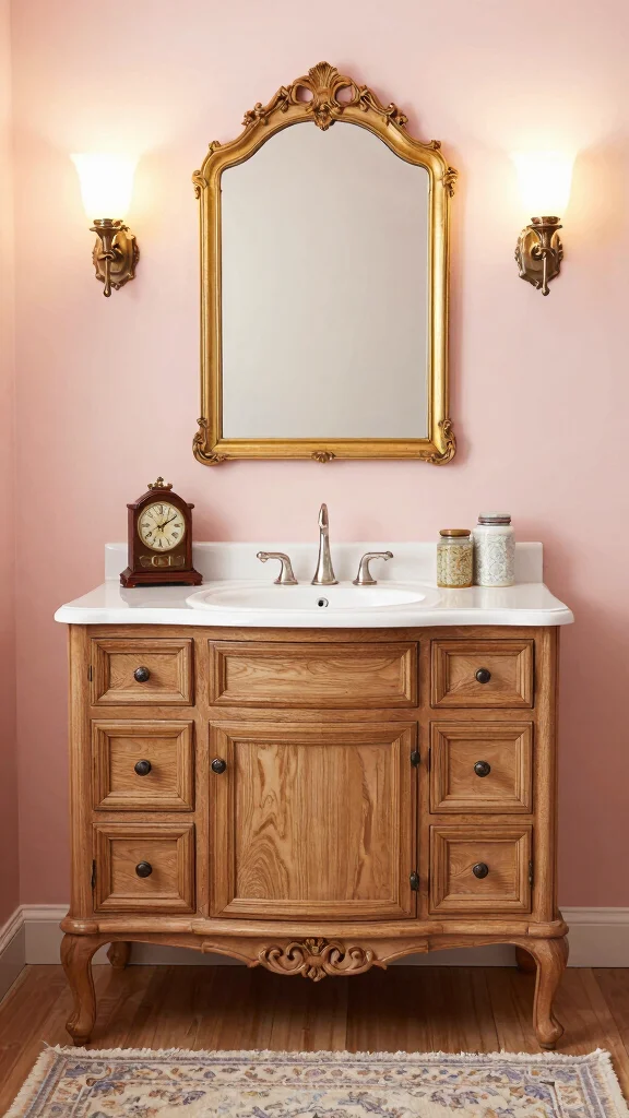 For vintage bathroom ideas that feature an oak vanity bathroom, layer antique-inspired elements with modern practicality.