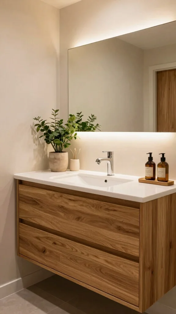 Did you know that an oak vanity bathroom instantly boosts warmth and perceived space by up to 20%? A floating oak vanity with clean lines keeps the room airy, while a vessel sink and minimalist fixtures add modern polish. It’s simple, practical, and naturally chic.