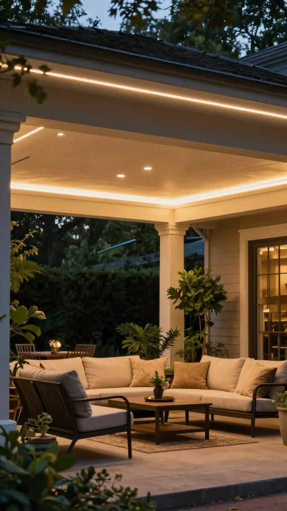 Illuminate your porch with creative ceiling lighting! By adding LED strip lights or recessed lighting, you can create a magical ambiance, especially during the evening hours. This affordable upgrade transforms your outdoor space into a cozy retreat, perfect for nighttime gatherings.