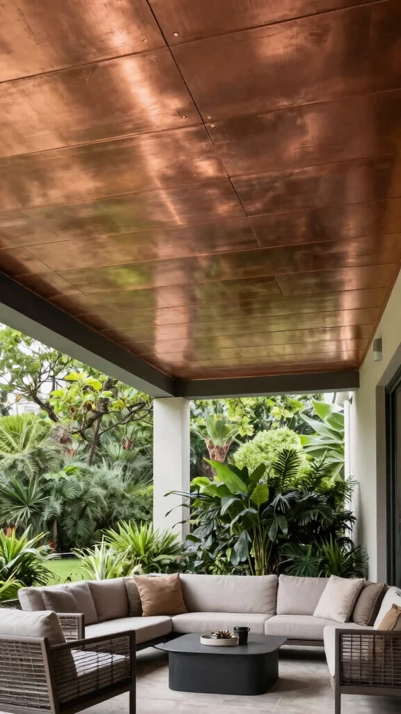 Fun fact: Modern metal ceiling panels can last 20+ years outdoors with minimal maintenance, making porch ceiling ideas cheap feel practical and durable. Quick tip: choose brushed aluminum or copper finishes for low-maintenance beauty that resists weather and cleans up in minutes.