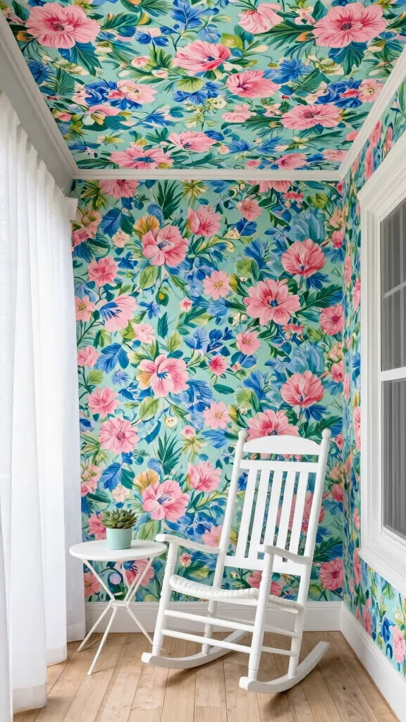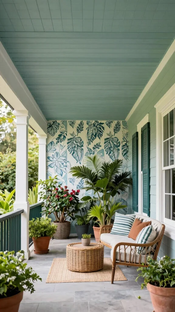 If you’re up for a creative challenge, consider wallpapering your porch ceiling with vibrant designs. Removable wallpaper allows for easy and budget-friendly transformations, providing a plethora of patterns and colors to choose from. This unexpected approach can turn your ceiling into a striking visual element that captivates visitors.
