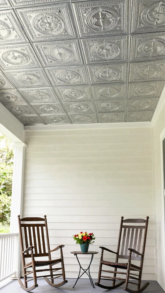 For a touch of vintage elegance, consider installing tin ceilings in your porch. These classic metal panels can be painted to match your decor and add a sense of nostalgia. The shiny surface reflects light beautifully, enhancing the overall brightness of your outdoor space.