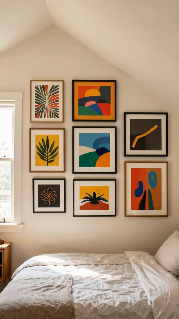 When incorporating art, select pieces that resonate with your style, whether abstract, nature-inspired, or minimalist. Hanging artwork at eye level, even on slanted walls, can enhance the visual interest.