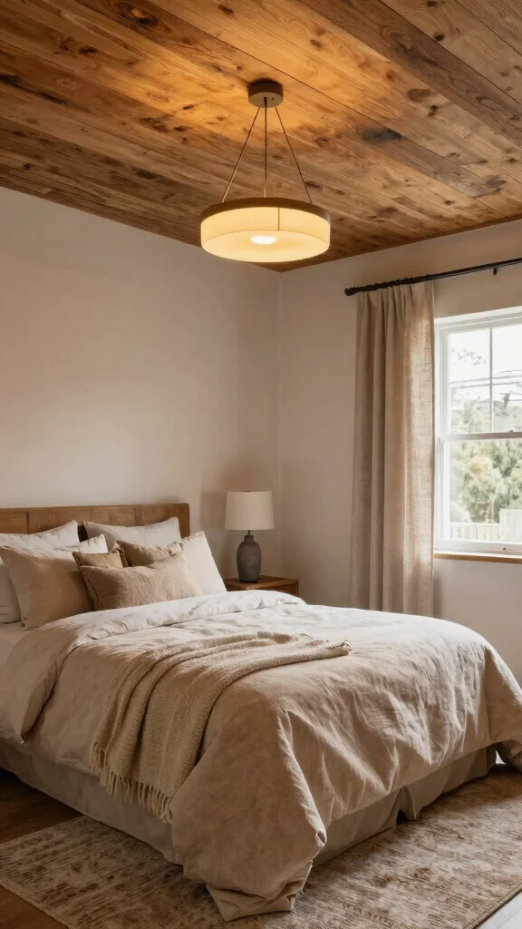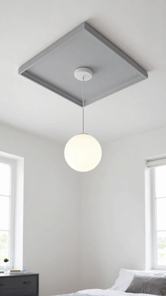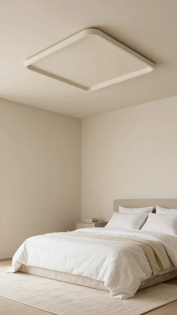 Consider a minimalist pendant or a low-profile fixture only if ceiling height allows, and choose warm color temperatures (roughly 2700–3000K) to keep the room cozy. This approach adds decorative ceiling ideas while preserving a calm bedroom mood.