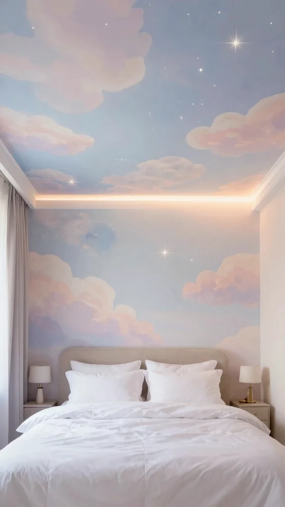 Transform your tray ceiling into a canvas by adding artistic murals or painted scenes. Whether depicting soft clouds or a starry night, murals can create an enchanting atmosphere that sparks imagination. This design approach offers a personal touch that opens up endless creative possibilities.