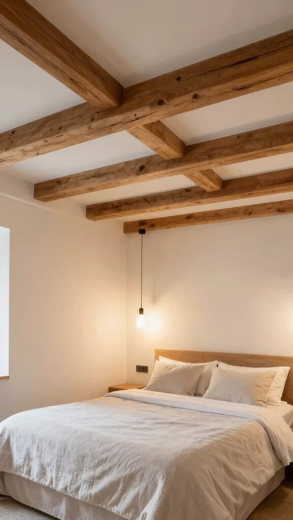 This design not only enhances warmth but also brings a rustic charm to a modern bedroom, creating a delightful blend of styles.