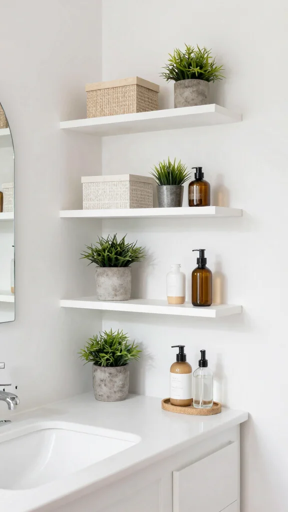 Floating vanities are a brilliant solution for maximizing space in smaller bathrooms. By elevating the vanity off the floor, this design creates an illusion of more room, making your bathroom feel more open and airy. The sleek, contemporary look enhances your space while simplifying cleaning efforts beneath. Pair it with a bright color palette to enhance the fresh, spacious feel.