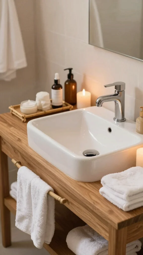 Creating a spa-like atmosphere in your bathroom starts with calming colors and soft textures. A vanity with a natural wood finish or soft white tones can exude relaxation, inviting you to unwind. Coupling luxury accessories like plush towels and scented candles enhances the tranquil experience, making your bathroom a personal retreat.