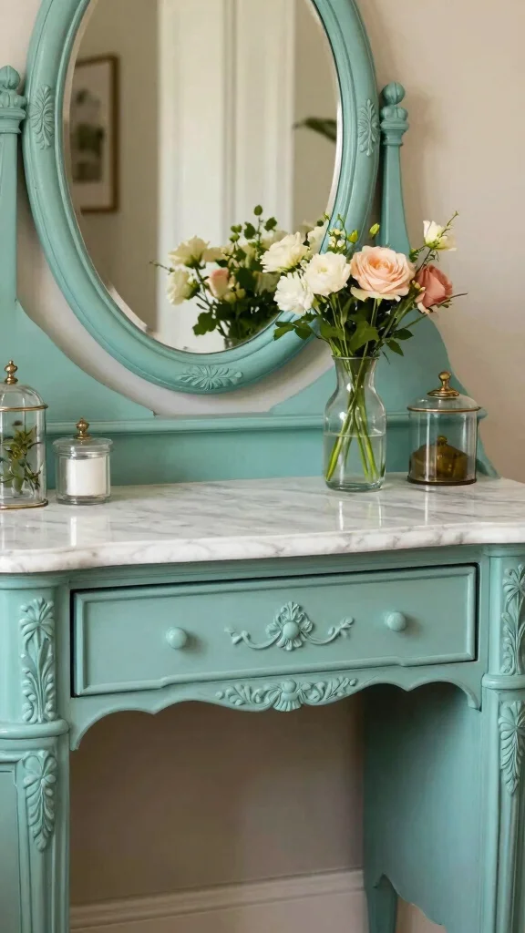 A vintage vanity not only sparks conversation but also embodies sustainability by breathing new life into charming, forgotten pieces.