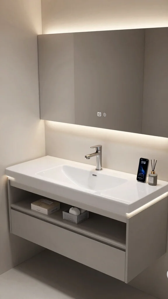 – Find tips on incorporating smart technology into your bathroom for a modern touch while keeping everything organized.