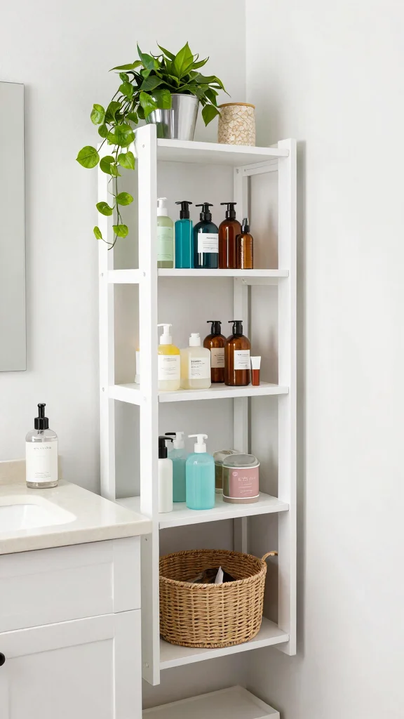 To maximize space, consider furniture with built-in storage or decorative boxes to conceal smaller items. This approach ensures that your essentials are easily accessible while keeping your bathroom looking tidy.