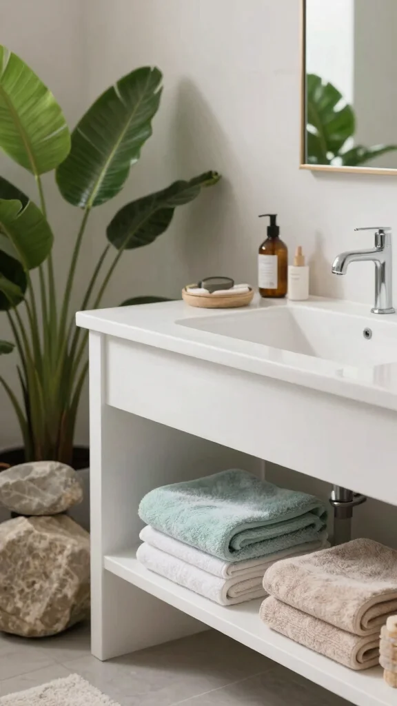 Adding accessories that evoke peace, such as calming scents from candles or essential oils, can further enhance the spa-like experience.