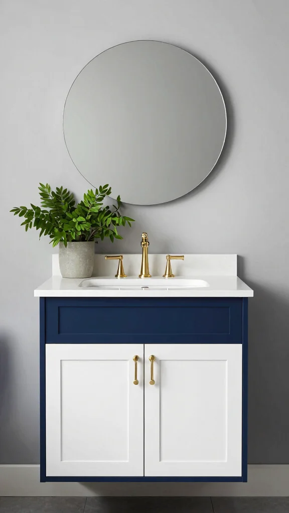 To implement this look, consider using a white oak vanity base paired with colorful upper cabinets or decorative accents. This versatile design harmonizes beautifully with both modern and traditional fixtures, making it a great choice for any bathroom style.