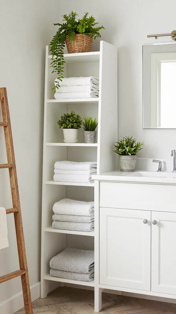 Open shelving can transform your bathroom into a stylish showcase for your favorite decor items. By incorporating white oak shelves above a white oak vanity, you create a cohesive and airy look that beautifully displays your curated collection of towels and plants. This design offers both functionality and visual appeal, allowing you to keep essentials close at hand while adding a personal touch.