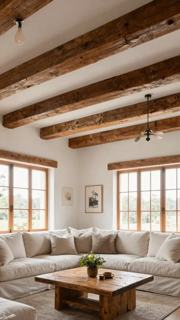 – Paint dark wood beams in white or soft gray for a brighter feel.