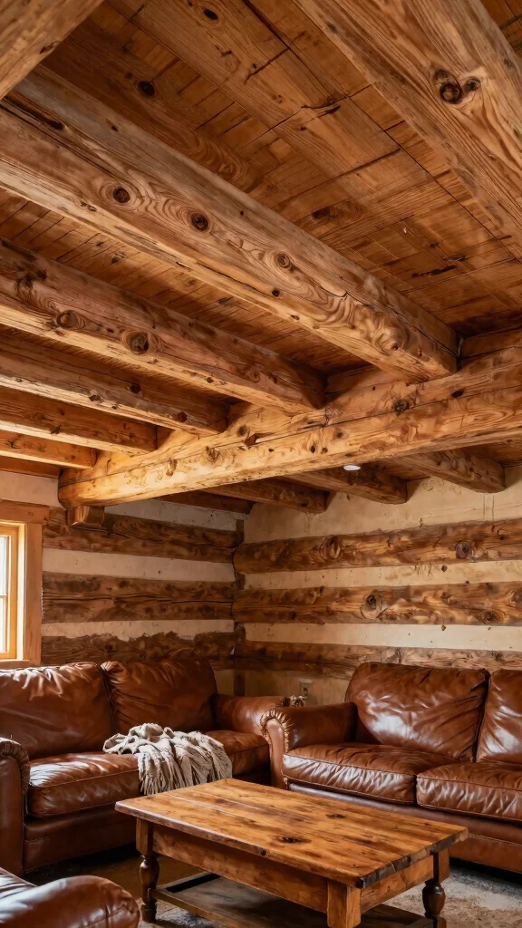Driftwood ceilings evoke a relaxed coastal vibe, perfect for beach lovers. The textured appearance of driftwood adds warmth and visual interest, making your cabin feel cozy and inviting. This look can be achieved with actual driftwood or driftwood-inspired finishes, allowing for flexibility in material choice. Pairing this ceiling style with nautical decor creates a serene retreat.