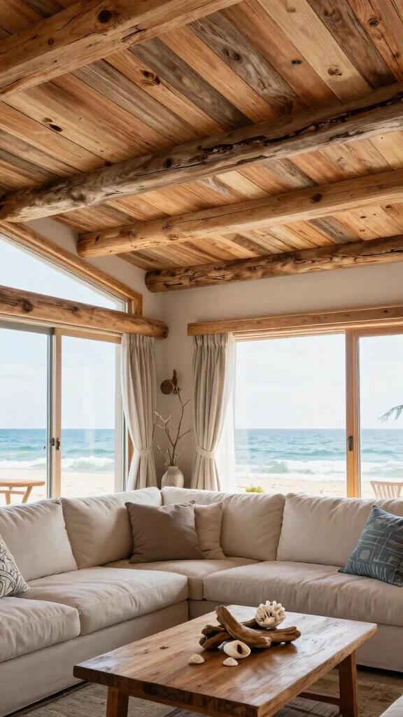 Cozy coastal vibes start with wood ceiling ideas that feel lived-in and warm. Driftwood ceilings, real or driftwood-inspired, pair with soft blues and sandy neutrals to create a serene, beachy retreat—perfect for cabins seeking natural charm and easy updates.